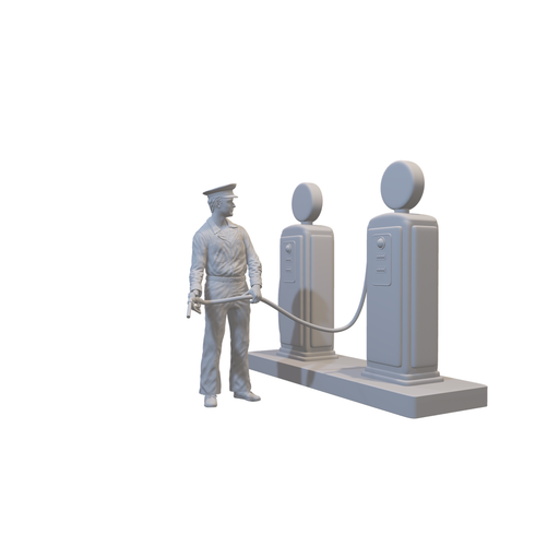 Vollständige Details anzeigen1950er Tankstelle mit Arbeiter - (3DP-140)