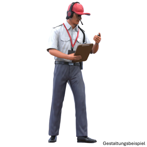 Farbklecks CollectionMiniaturfigur: „Rennmanager mit Stoppuhr“ Material: ResinMaßstab: Nach WahlZum Selbstbemalen Mit Headset, Klemmbrett und Stoppuhr bewaffnet, ist di...