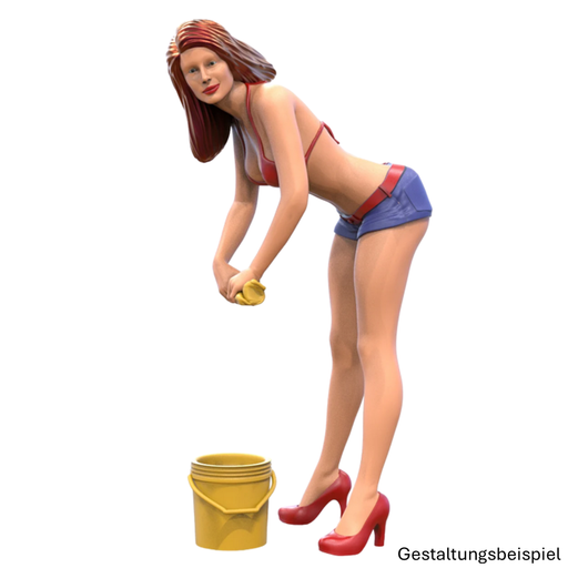 Farbklecks CollectionMiniaturfigur: „Car Wash Girl“ Material: ResinMaßstab: Nach WahlZum Selbstbemalen Mit knappen Shorts, High Heels und einem Schwamm in der Hand ist ...