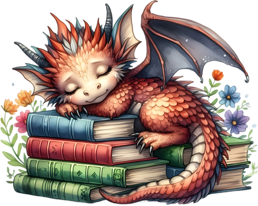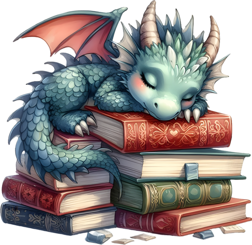 Motivtransfer 6960 Drache schläft auf Büchern