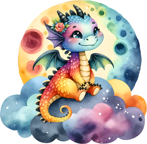 Vollständige Details anzeigenMotivtransfer 7021 Kleiner Drache sitzt auf Wolke vor Mond
