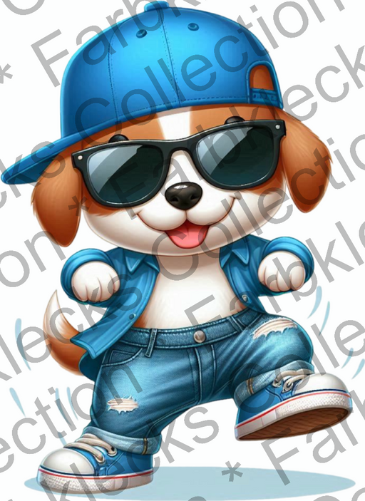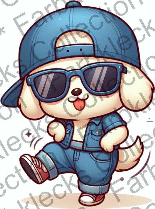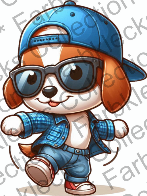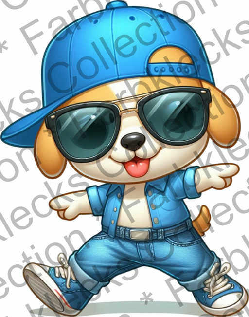 Vollständige Details anzeigenMotivtransfer 9511 Kleiner Hund mit Sonnenbrille tanzt