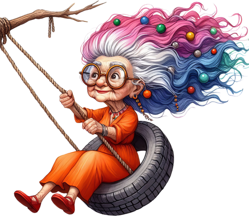 Vollständige Details anzeigenMotivtransfer 6358 Lustige Seniorin schaukelt
