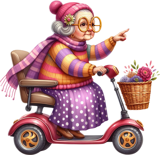 Vollständige Details anzeigenMotivtransfer 6362 Lustige Seniorin mit Elektromobil