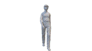 Hose: Jeansblau – ruhig kräftig, mit leichten Trockenbürst-Akzenten in Hellblau für einen realistischen Stoffeffekt.